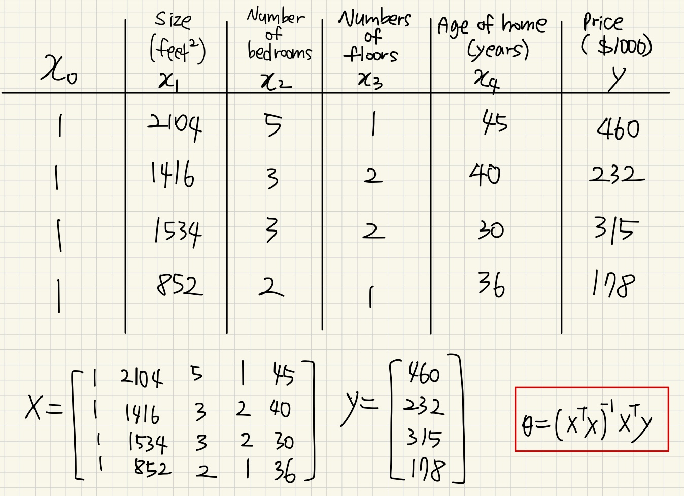 → x1 = size of house / 2000 & x2 = number of bedrooms / 5